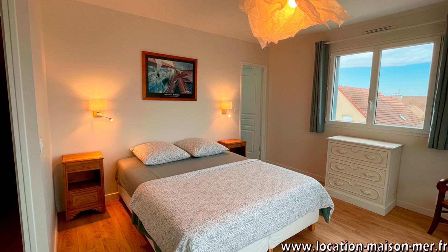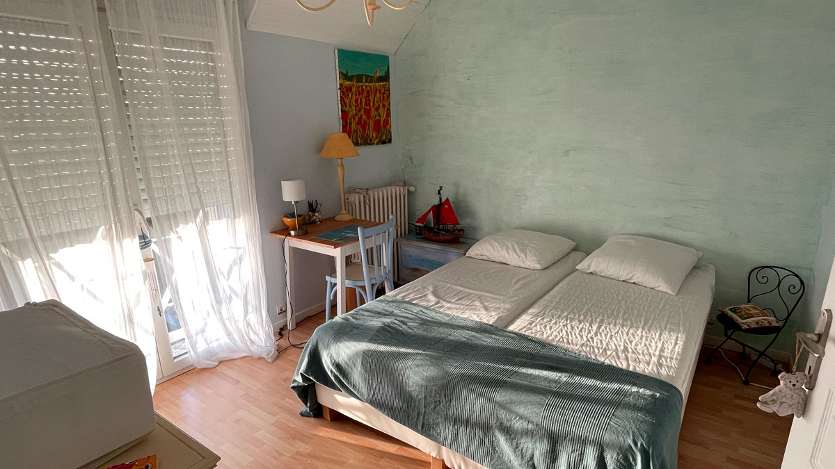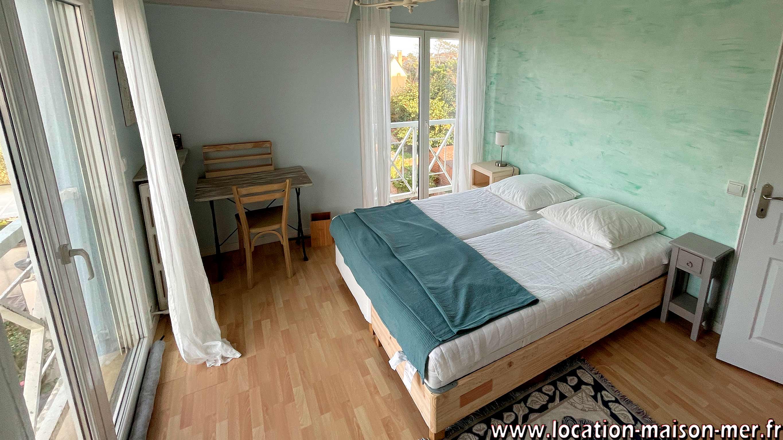 - 2 chambres avec chacune 2 lits en 80 pouvant être réunis. Vue mer.